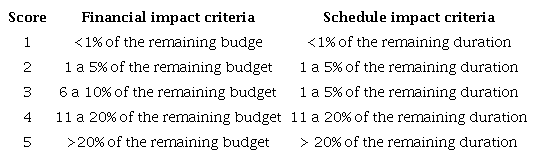 To score the financial and schedule impact assessment, a linear scale was also used, as shown in Table 2.