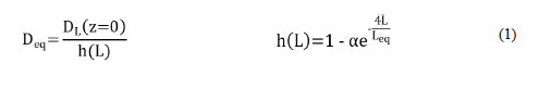 In the functions (1), the dimensionless parameter a is related to the beam scattering fraction and Leq, the equilibrium length, is the L irradiation length in which the saturation occurs due to equilibrium. From the curves, equilibrium doses (Deq) were determined in the center (Deq,c) and in the periphery (Deq,p), and, for each protocol, the planar equilibrium dose, Deqm :