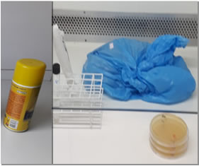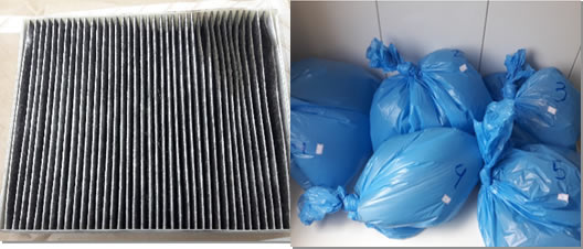 The fungal identification was performed using lactophenol cotton blue solution for microscopy, for staining molds, as described by Pitt and Hocking [13]. After the fungal analysis of control group, 15 filter samples were cleaning with a vacuum system and treated by sanitizer for vehicle air conditioning filters. The air conditioner sanitizer spray was used in the samples for 5 minutes, and they were composed by denatonium benzoate and were kept in bags (Figure 1) with an atmosphere filled with sanitizer spray and kept in cardboard boxes before the gamma radiation treatment.