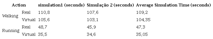 Objective 2: verify the displacement time of the avatar (character) between one job and another and compare with the real.