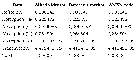 With the data above, obtained using the Albedo method, the comparison is made with Damaso´s method [9] and the ANISN code, as shown in Tab.4.