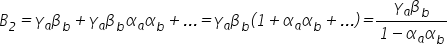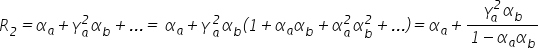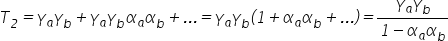 The equations (2) to (5) allow to get the analytical equations to reflection (Eq. 2), absorption (Eq. 3 and 4) and the total transmission (Eq. 5) in the two slabs model. Note that the sum of each term is equal to the sum of an infinite geometric progression with ratio smaller than 1 (αaαb) the sum converges to a value possible to be calculated as shown above.