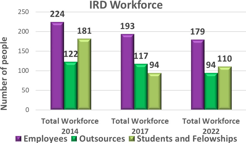 Despite its relevance, the IRD has suffered in recent years a loss of its specialized intellectual capital, either due to the high number of retirements the lack of replacement of qualified personnel, which can compromise the execution of a large number of activities.