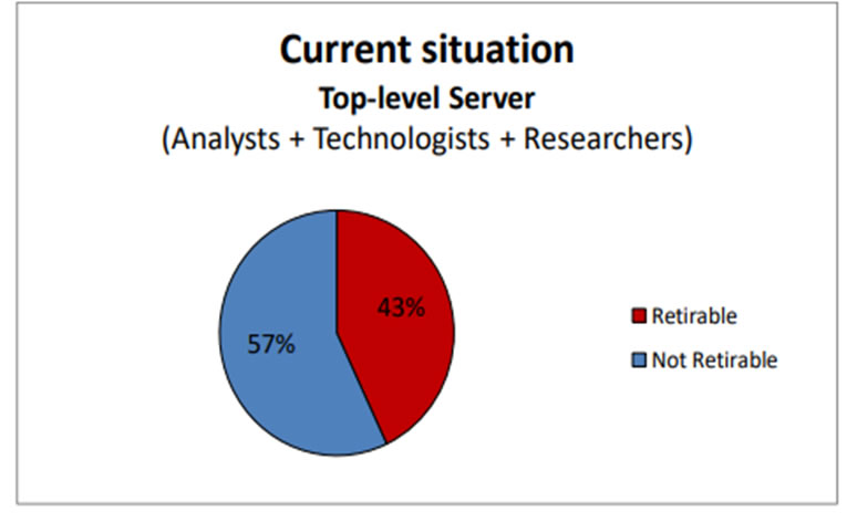 It is therefore important to know how many of these employees who retire have the critical knowledge to carry out essential activities for fulfilling the IRD's mission. Factors such as: the time for the employee to leave; the knowledge and technical capacity of the employee; and the availability of replacement personnel with knowledge and skill.