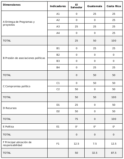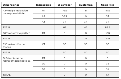 El compromiso político en asuntos de género es un elemento crítico para la institucionalización (Levy, 1996). Dicho compromiso debe expresarse en la posibilidad de alcanzar diversas instituciones. De los países estudiados, Costa Rica se destaca, mientras se presenta contraria en los otros dos países centroamericanos.