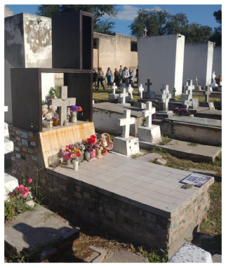 Como planta Semán (2021) estas devociones “no se hacen presentes en templos, apenas en altares a veces públicos y a veces domésticos. Pero desde el punto de vista de los habitantes del barrio las devociones son omnipresentes y están al orden del día” (Semán, 2021, p. 56). El caso que nos ocupa está emplazado en un cementerio público de la ciudad de Córdoba. Si observamos los cementerios vemos que en ellos conviven ritos católicos y populares. El que nos convoca, San Vicente, es un espacio en el que las prácticas funerarias comprenden un complejo sistema de ritos donde se conjugan influencias de diverso origen, que sufren transformaciones propias del lugar, de la clase social y del medio cultural. Hay una multiplicidad de formas.