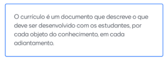 Essas decisões fazem parte da política curricular adotada e implementada. Fica claro o poder que determinados agentes possuem nesse processo citado, “estabelecendo as regras do jogo do sistema curricular” (Sacristán, 2017, p. 109). Tem-se, com isso, a política e estruturas administrativas como o primeiro nível de influência na composição curricular. Ao realizarem a regulação do ensino a partir da estrutura curricular de forma ampla para um país inteiro, tem-se o currículo prescrito (Sacristán, 2017). Nota-se que é evidenciado nas falas dos sujeitos desse trabalho, relacionando a maneira de elaboração de tais documentos. Exprimem certo ressentimento no fato da não escuta das bases ao afirmarem o seguinte: “não houve efetiva participação da comunidade, em particular dos professores, dada a situação na qual foi enviada ao congresso, via medida provisória” (DC).