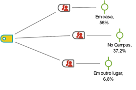 Desses 293 estudantes, constatamos que 164 (56%) utilizavam o computador em casa. Entretanto, o significativo número de 109 estudantes (37,2%) utilizava o computador no Campus. Outros 20 estudantes (6,8%) utilizavam o computador em outro lugar.