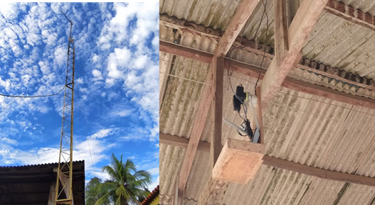 O acesso à internet em áreas rurais de Rondônia representa uma realidade distante para muitas famílias, o que o dificultou o processo de interações entre os estudantes e professores, a realização das atividades propostas e, por conseguinte, a permanência no curso. A Figura 4, apresenta um registro de equipamentos existentes no meio rural de Ariquemes, para captar sinal de internet: