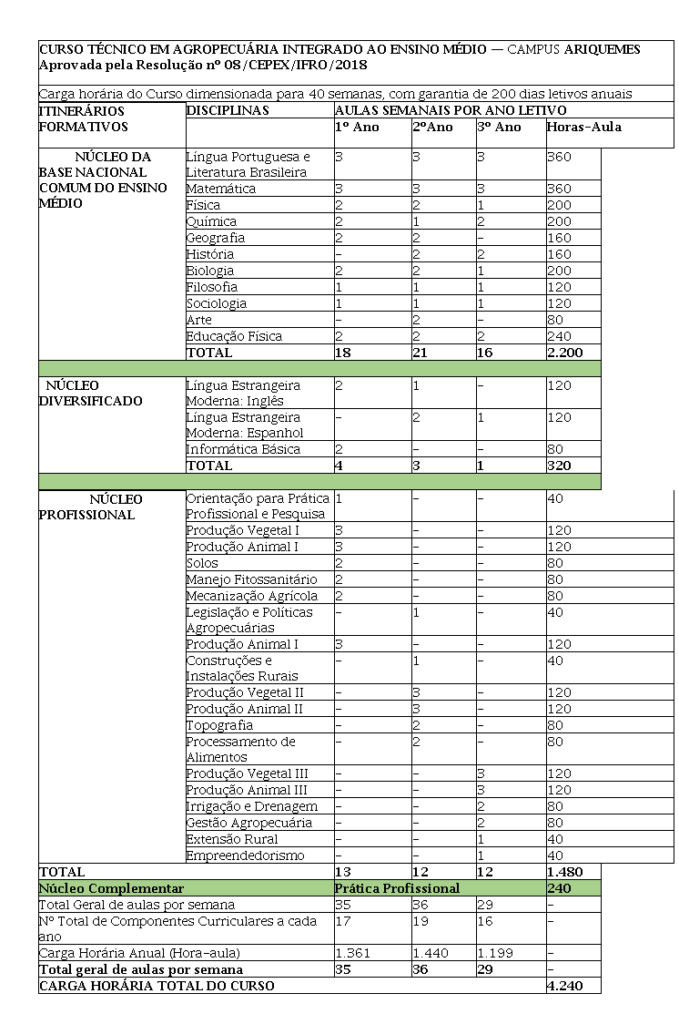 15. INSTITUTO FEDERAL DE EDUCAÇÃO, CIÊNCIA E TECNOLOGIA DE RONDÔNIA (IFRO). Projeto Pedagógico do curso Técnico em Agropecuária Integrado ao Ensino Médio. Ariquemes: IFRO, 2018.