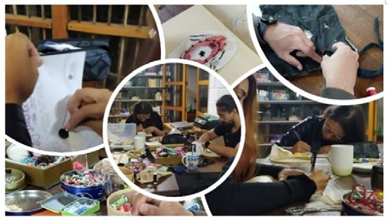 Nos dimos cuenta entonces de que las afecciones desatadas en el maestro en el encuentro educativo fueron las que dieron vida a la tesis-taller, y los pasajes y galerías recorridos por el laberinto provocaron en las CostUROmaestras otras fORMAs de poner la mirada investigativa en el maestro. Crear un taller de CostURA, donde se recompusieran entresijos, donde aparecía (tímida) la educación como experiencia afectiva; convirtiéndolo en un aula afectante. Fue así como nos hicimos cargo de “todas las zonas de la vida” (Zambrano, 2019, p. 32), pues el método cobró fuerza con cada encuentro y no solo iba reVElando las afecciones ocultas; sino que se abrió paso a un encuentro con el saber de sí (Bárcena, 2016). Los maestros cuando volvieron a su afección/afectura materializada, hecha CostURA, se fueron encontrando con “una forma de (auto)educación” (p. 18); cada vez que la aguja rompía la tela y se abría paso a un nuevo trazo, sentían que enhebraban el “arte de vivir” (p. 19), el taller intensificó pliegues vitales, vibrátiles en armonía con la vida, con el gesto y con la posibilidad de buscarse para inquietarse y no ser el mismo.
