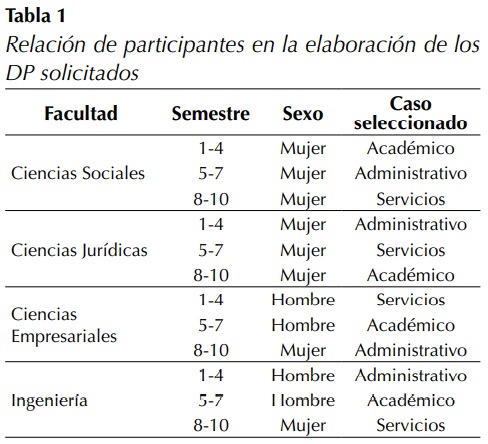 Es de resaltar que la investigación ha tenido como premisa que no es necesario una formación jurídica para ejercer la ciudadanía y, por ello, los participantes son estudiantes de los cuatro programas de la institución en el contexto de la formación de habilidades retóricas y argumentativas en el que se desarrolla la educación, sin desconocer que, como recurso legal, el DP está jurídicamente reglamentado.