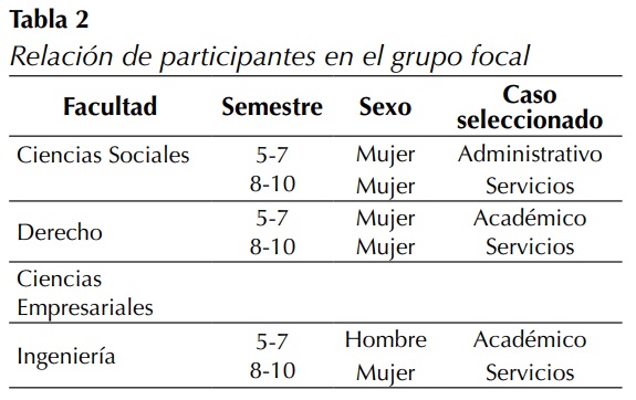 Por otro lado, se convocó a doce participantes al grupo focal, cuyo propósito fue confirmar los hallazgos encontrados en el análisis de los DP y los cuestionarios sobre las habilidades retóricas y argumentativas identificadas, definidas y descritas. No todos aceptaron. Por tanto, el grupo focal, con una duración de sesenta minutos, se llevó a cabo a través de la plataforma virtual Teams con los participantes que recoge la tabla 2.