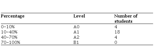 Level test. There are six levels of language proficiency (A1, A2, B1, B2, C1, and C2), grouped into three broader levels: A1-A2 (basic user), B1-B2 (independent user), and C1-C2 (proficient user). Level tests measure a language user’s comprehension and production against a rating scale such as the CEFR scales (Language Testing International, n.d.). The level test had five sections (grammar, reading, writing, listening, and speaking), covering the levels A1, A2, and B1. It was applied as a needs assessment instrument to support the research and as a source of information about the students’ skills.
