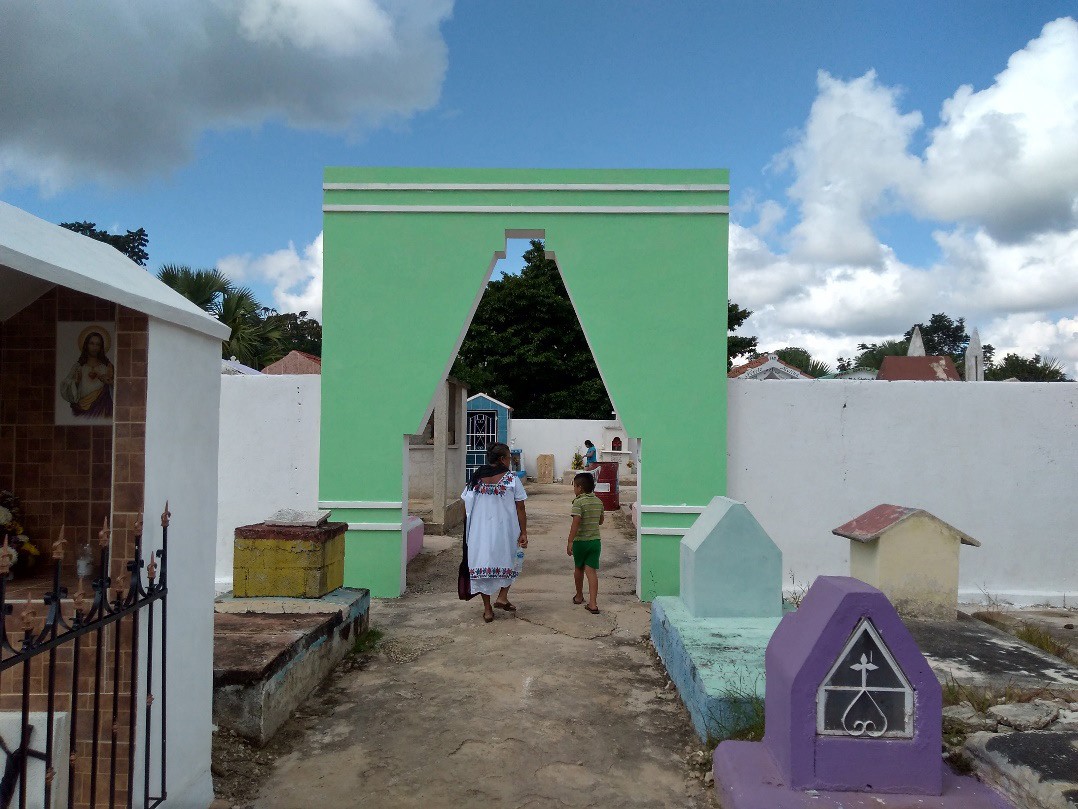 Imagen 1. Visita al cementerio en el Día de Muertos, Muna, Yuc. 1 de noviembre de 2019.