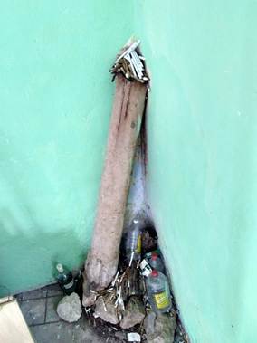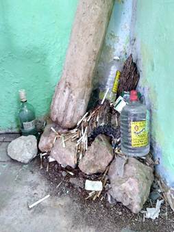 Enseguida, alguno de los deudos (as) le encendía un cigarrillo al k’ojon- ché’ (muchas veces toda la cajetilla le era obsequiada) y depositado sobre la parte superior del madero o sobre una piedra situada junto a él; además de una botella de aguardiente o ron. Estas ofrendas se sumaban a muchas otras similares que aún se conservaban en torno o sobre el madero. La prescripción de ofrendar no podía pasarse por alto como ya hemos visto.18