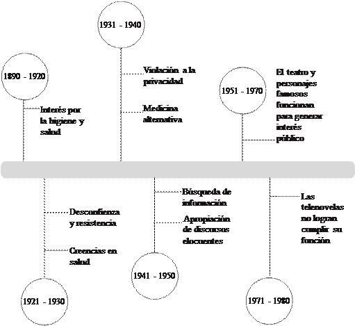 Tras la creación de la Comunicación y salud como disciplina o área de estudio especifica, las estrategias iniciaron a transformarse recurriendo a recursos culturales muy populares entre los habitantes, como por ejemplo, las telenovelas. Soto (2007) llevó a cabo una investigación en la que se propuso reflexionar acer- ca de las políticas que se implementaron para fomentar la planificación familiar en la década de los setenta a partir de la elaboración de telenovelas en conjunto con Televisa y CONAPO. La historiadora concluye que, en este intento de de- construcción sobre el uso de la píldora anticonceptiva, se reforzaron las divisio- nes entre la gente, mismas que contribuyeron a la aparición de nuevos roles de género.