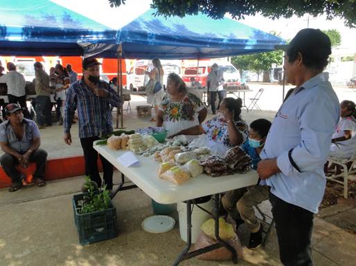 Fue entonces cuando dio inicio el intercambio de semillas o la compraventa entre aquellos que acudieron a comprar semillas. Resaltaban las de Xoy, comisaría de Peto, por la presencia del Guardían de mayor edad y las artesanías que exponían: canastas y lámparas de bejuco, chujs o calabazos y leks, productos estos de la milpa decorados y esgrafiados. No faltaban las Guardianes de Dzutoh, y Saba- ché, las mesas de Xbox con su rico colorido de semillas. Los concentrados de medicina herbolaria, la miel de melipona, las plantas, los jugos y frutas frescas tampoco faltaban.