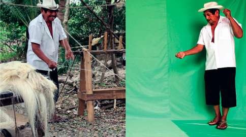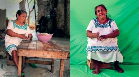 Diana: A este proceso lo llamamos donación de movimiento. Primero registramos el contexto cotidiano de la actividad, luego colocamos una pantalla verde, quitamos los objetos para dejar ver únicamente el movimiento del cuerpo. En ocasiones eso resulta un poco difícil pero la verdad es que la gente es amable, tiene ganas de compartir su actividad. Creo que lo aprecian porque forma parte de su vida y su identidad. Además, comprenden nuestra intención de salvaguardar su movi- miento y transmitirlo a otras generaciones.