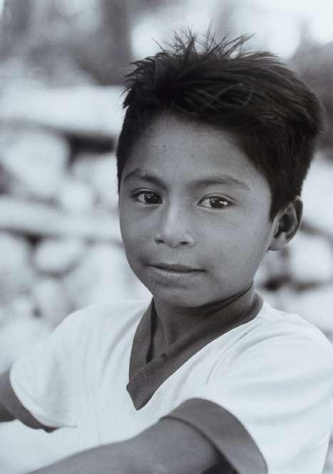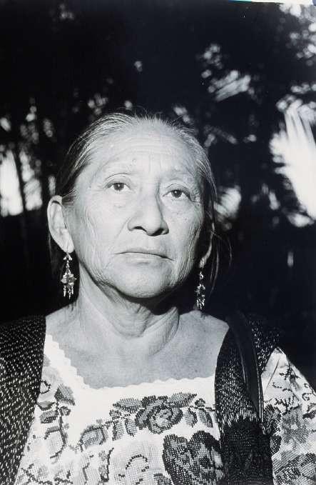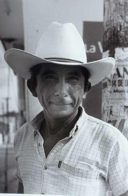 Al tomar fotos de los rostros de las personas, los fondos de las escenas se volvieron menos significa- tivos. Independientemente del entorno, pero conservando indicio de los alrededores, siempre trato de capturar la esencia de los sujetos. Cuando intento tomar las primeras fotografías, algunas personas no se muestran tan amables. Siempre les pregunto si me permiten retratarlos, muchos aceptan, pero han habido algunas excepciones. En uno de mis viajes a Motul, divisé a un grupo de campesinos cortando maleza a las orillas de la carretera. Al acercarme comprobé que no eran hombres adultos, sino amas de casa y adolescentes con machetes. Me detuve para fotografiarlos, ofrecí algo de dinero y obtuve algunas tomas. Pero una anciana, evidentemente la líder del grupo, me hablaba en maya. Como no comprendía el lenguaje, no hubo comunicación. Su tono de voz se notaba fuerte y el grupo que ella