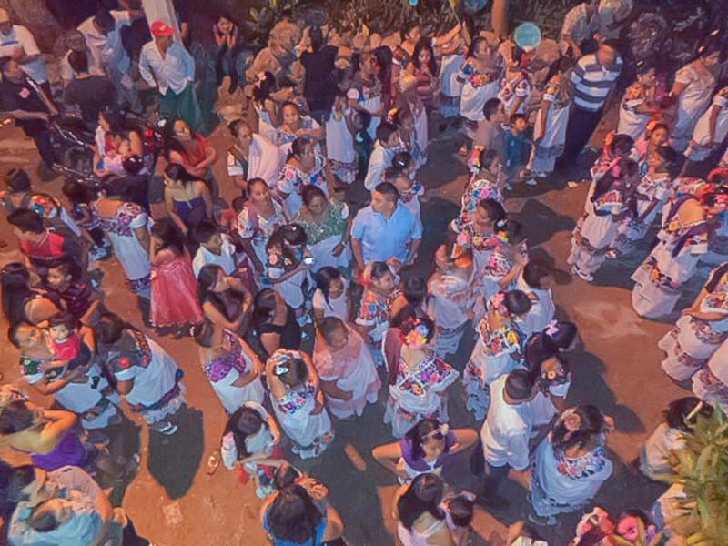 La fiesta por el nacimiento del niño Jesús se extiende por 3 días después de la Nochebuena, durante los cuales se realizan gremios, bailes, comidas y colectas. En el registro fotográfico hay imágenes de las localidades de Pop, Chikindzonot, Ebtun y Dzitnup.
