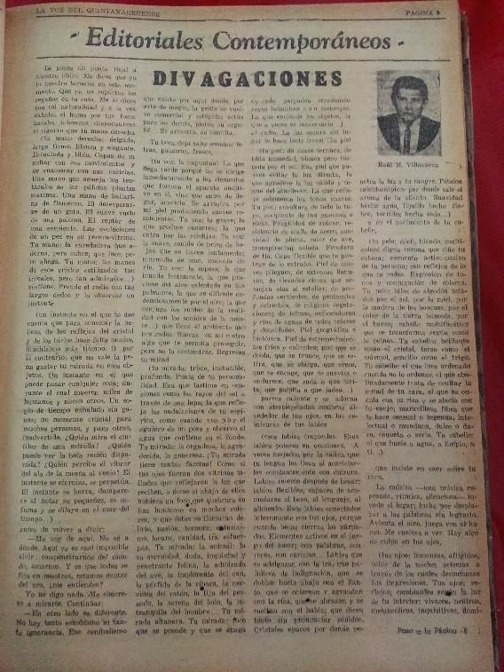 VILLANUEVA, RAÚL M. (1969). “Divagaciones”. La voz del quintanarroense (viernes 4 de julio), pp. 3-6.