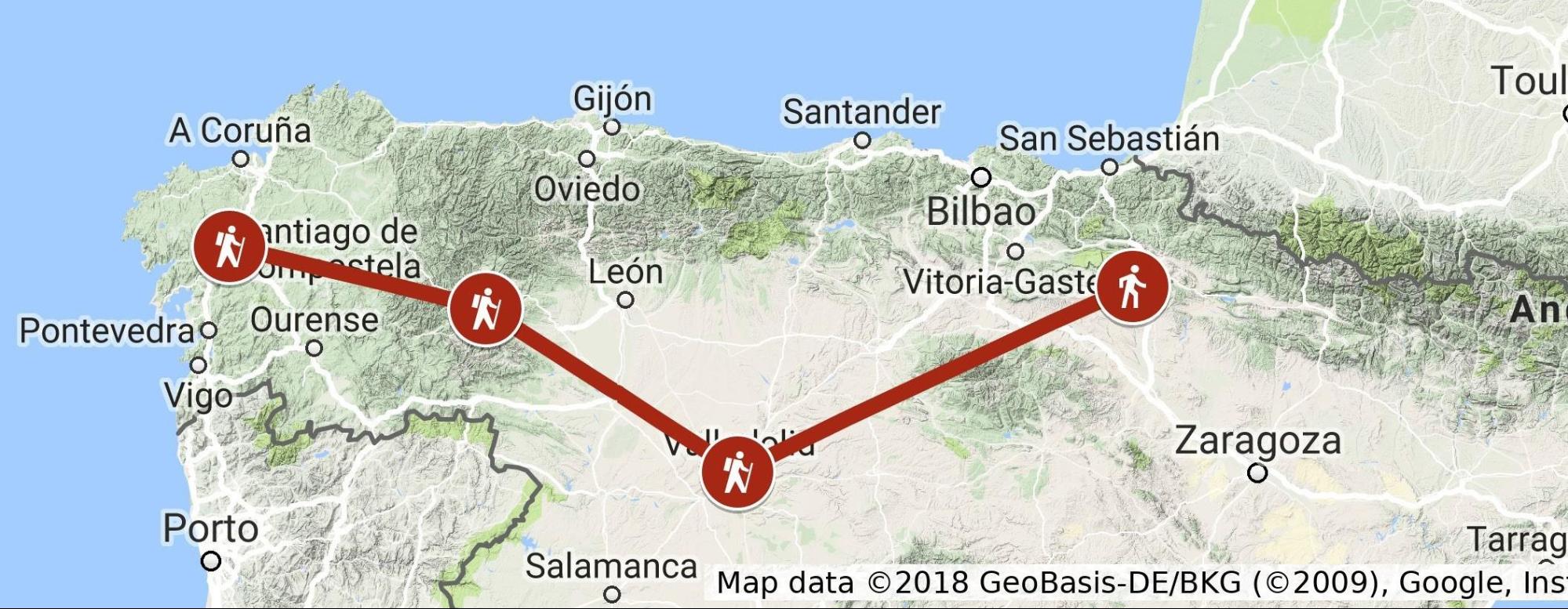 Mapa 1: Recorrido aproximado de los peregrinos de Finisterra.