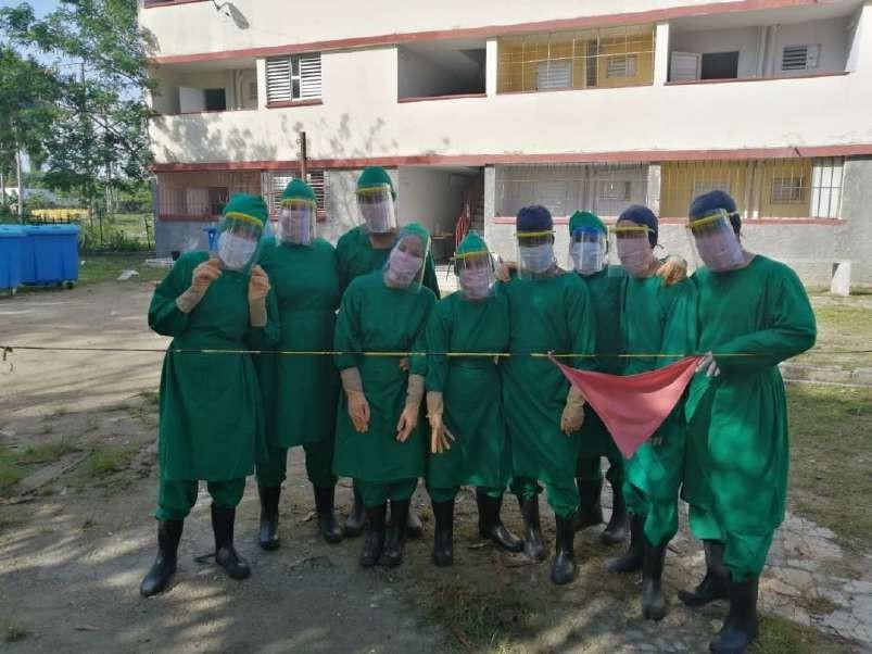 1. Trabajador voluntario de la Universidad de La Habana listo para entrar a la Zona Roja.2 y 3. Grupo de voluntarios de la Universidad de La Habana en la Zona Roja.Grupo de apoyo integrado por voluntarios y personal médico quienes, tras haber terminado su servicio, dieron negativo al examen PCR en su período de cuarentena obligatoria.Importar lista7