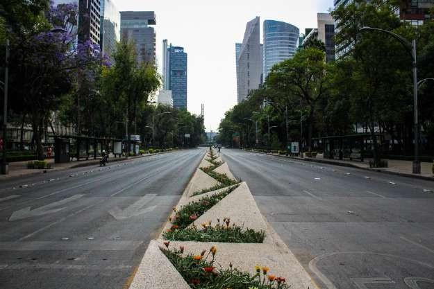 Paseo de la Reforma vacío. Ciudad de México(Imagen 3) Paseo de la Reforma en viernes. Ésta es una de las principales aveni- das de la Ciudad de México en cuanto a su concentración económica, su abun- dante aglomeración de coches y sus visitas turísticas. Esta perspectiva no se ha- bía visto en una tarde casual hasta ahora que se ha establecido la consigna de “quédate en casa”.
