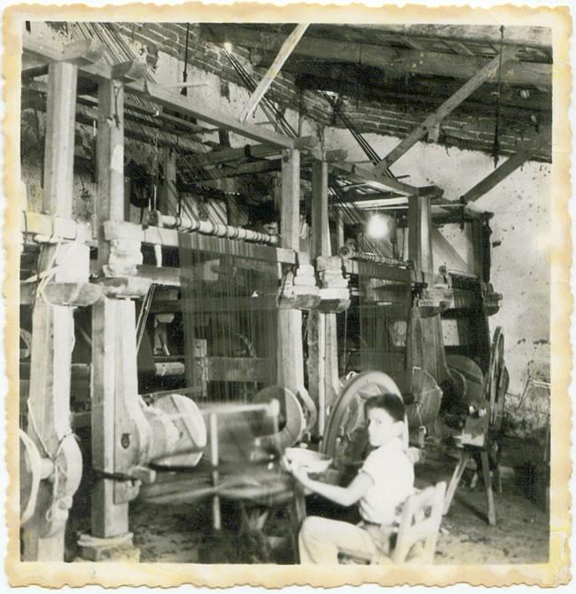 Fotografía 1: Niño aprendiendo a trabajar el telar en el taller de rebozo. Fuente: Archivo Histórico de Uriangato. Fondo Fotográfico General. s/f