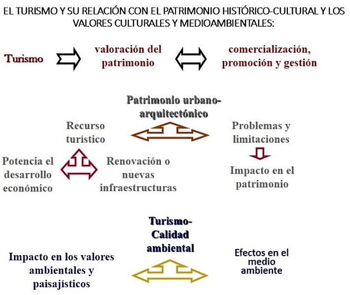 Fig.02. El turismo y su relación con el patrimonio histórico-cultural y los valores culturales y medioambientales. Fuente: Elaboración propia a partir de Brandis, D. y Río, I. (1998).