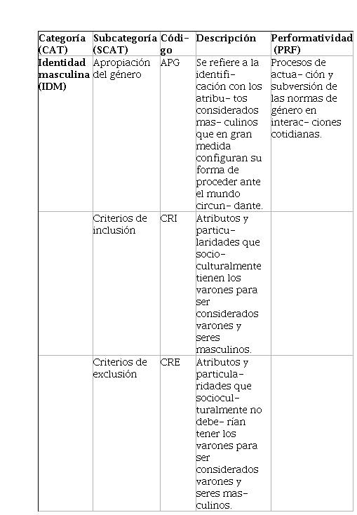 Dicho lo anterior, este documento tiene como propósito articular la re- flexión teórico-metodológica para el análisis del “género” a partir de las cate- gorías analíticas performatividad de género y masculinidades disidentes. Enfa- tizando la necesidad de entender esta yuxtaposición como un proceso complejo y dinámico en el que coexisten y proliferan diversas prácticas discursivas que subjetivan y se enraízan en la constitución y reconocimiento de “masculinidad” de los sujetos en su praxis.