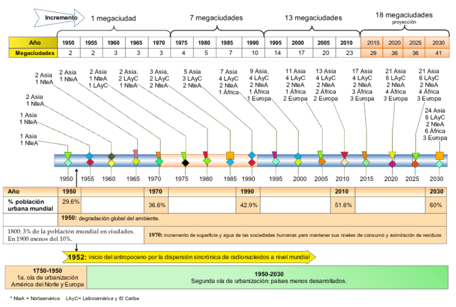 Figura 2: Línea del tiempo: urbanización, megaciudades y antropoceno2