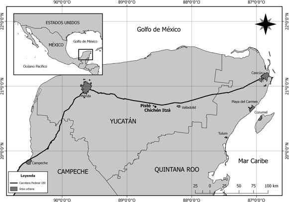 Figura 4. Mapa de Pisté y Chichén Itzá. Fuente: elaboración propia.