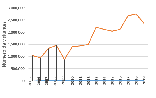 Figura 5. Número de visitantes a Chichén Itzá. Fuente: elaboración propia a partir de datos del INAH