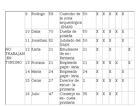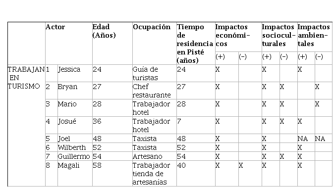 La tabla 4 resume las percepciones de los 16 habitantes de Pisté entrevistados para este estudio.