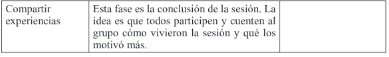Se recomienda que las sesiones sean recurrentes y que, en cada una de ellas, después de la segunda o la tercera, el grupo comience a hacerse responsa- ble de proponer las actividades de cada sesión, porque el mayor interés es que la comunidad encuentre su propio espacio de contacto, confianza y comunicación permanente y autogestivo. La figura del coordinador externo deberá ser cada vez menos necesaria y se recomienda que, en las primeras tres sesiones, vaya expli- cando a los participantes el objetivo de cada una de las fases de la experiencia para que el grupo las pueda entender, asimilar y replicar con sus propios recursos creativos.
