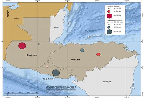 Con estos antecedentes presentes en dichas sociedades centroamericanas, las desigualdades socio-económicas crecieron dramáticamente, lo que a su vez fue el caldo de cultivo para toda la violencia criminal y estatal que se vería refle- jada en la elevada tasa de homicidios, que junto con los índices de pobreza extre- ma se han convertido en las más altas de todo el planeta. Esta violencia ha mo- tivado el desplazamiento forzado de otros amplios sectores de la población que no necesariamente se encontraban en condiciones de segregación social pero que sufrían los efectos directos de los conflictos armados, convirtiéndose en víctimas de represalias de parte de las numerosas pandillas criminales conocidas Maras, lo que los hizo unirse al éxodo masivo del colectivo que huía de las consecuencias más perniciosas de la pobreza. Una realidad que comenzaría en El Salvador, pero que se extendería como efecto dominó hacia toda la región del Triángulo Norte de Centroamérica, Guatemala y Honduras, un hecho que equivale a afirmar que las clases medias se convirtieron en un lujo innecesario en la composición social de estas naciones.