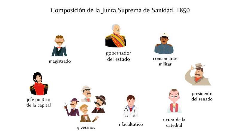 Dado su carácter temporal y su función en emergencias, las Juntas de Sanidad no estaban ancladas en los cabildos, como las comisiones de policía, sino que buscaban una supuesta representación ciudadana. No obstante, esta re- presentación reflejaba la configuración estructural del poder a nivel estatal: inte- grantes de los cabildos, ciudadanos notables, profesionales (médicos), miembros del clero y militares. Posteriormente, esta estructura de centralización del poder en asuntos de sanidad, quedó plasmada a nivel constitucional, y sentó las bases para la creación del Consejo de Salubridad en 1895, que luego se convertiría en la Junta Superior de Sanidad en 1911. ֍