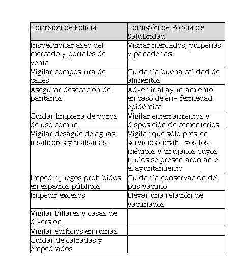 Ilustración 4. Funciones sanitarias asignadas a las Comisiones de Policía, 1870