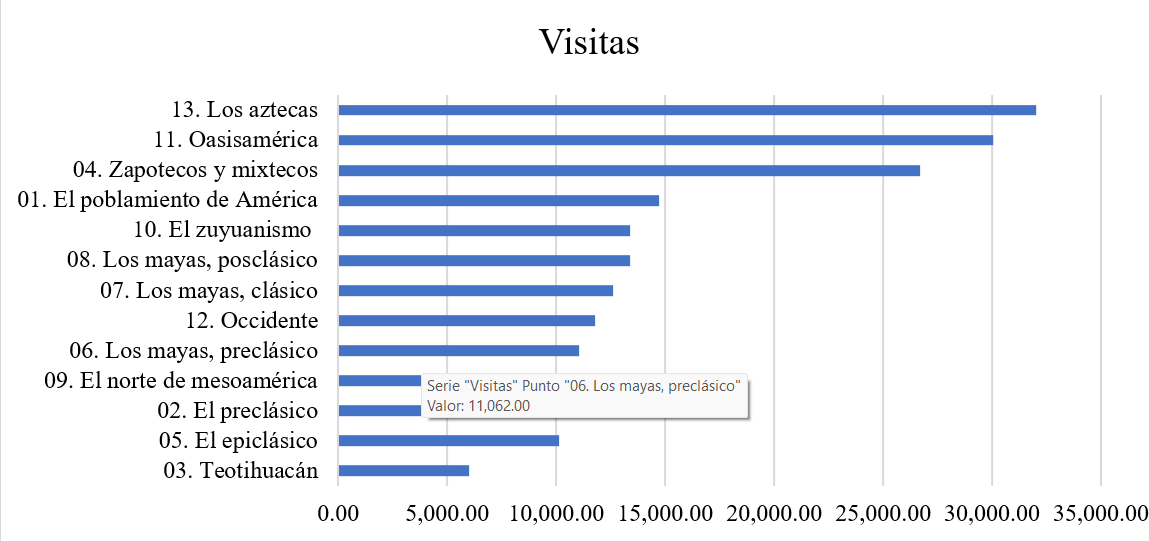 Las visitas tampoco se distribuyen equitativamente entre los vídeos. Por razo- nes sobre las que reflexionaremos en el segundo apartado, la mayor parte de las reproducciones se concentran en el vídeo sorbe los Aztecas o la Triple Alianza.