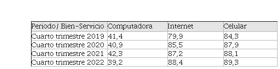 Tabla 1: Utilización de bienes y servicios de TIC en la Provincia de Buenos Aires