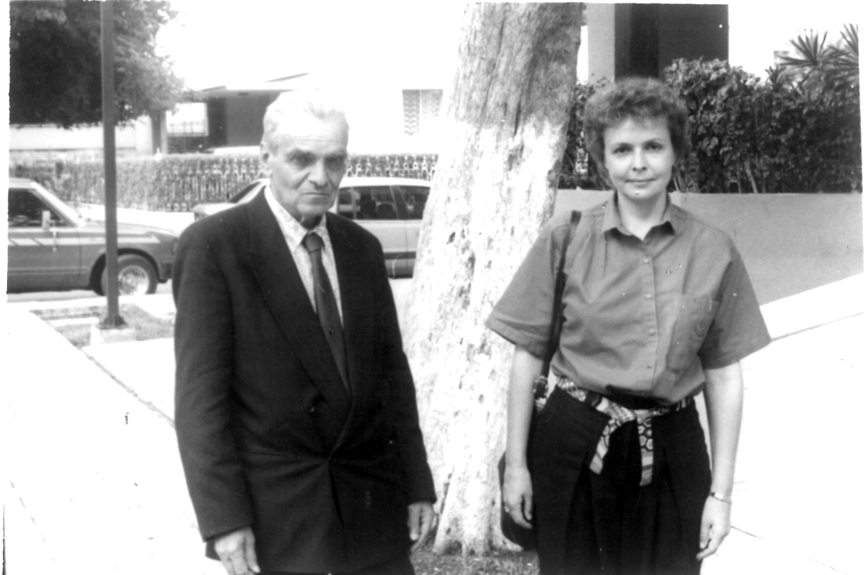 Yuri Knórosov y Galina Eshova, durante su primera visita a la ciudad de Mérida (Foto cortesía del autor).