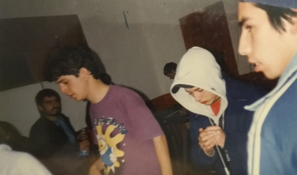 En frente de mi barrio se mudó una gente y tenían un chico que era profesor de folclore y a la vez bailaba break dance, y le pedí que me enseñara a bailar y que me pase un casete de break dance, y quedé impactado. Ahí empecé. Y en los noventa conocí a los primeros bailarines de break dance de la ciudad de Córdoba que eran los Duques del Ritmo, que bailaban en 9 de julio y Rivera Indarte, y mi sueño era conocerlos. Fui y un sábado a la noche los conocí, su historia, que habían armado su propio grabador. Era un grupo muy bien organizado, se vestían todos iguales. (Negro Chetto, entrevista personal, 16 de marzo de 2021)