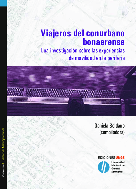 Perteneciente a la colección Cuestiones Metropolitanas de la editorial UNGS, de la Universidad Nacional de General Sarmiento, la compilación Viajeros del conurbano bonaerense de Daniela Soldano (2017) se presenta como una producción académica resultado de una investigación realizada entre 2010 y 2014, destinada a “analizar la relación entre los viajes de los residentes de la periferia del conurbano bonaerense y sus condiciones y modos de vida” (p. 1), tomando como área testigo la periferia noroeste de la Región Metropolitana de Buenos Aires, especialmente, el municipio de José C. Paz, en el cual se realizó el trabajo de campo (p. 2).