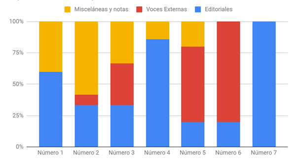 Ya en los números cinco y seis del 30 de mayo y el 20 de junio respectivamente, vemos cómo las voces externas terminan por modificar su fisonomía. De un periódico casi íntegramente compuesto por artículos propios, en estos números se transforma en uno exactamente a la inversa: el único artículo propio de ambos números es el “Cuadro Político de la Revolución” que los encabeza. La fisonomía del periódico se ha modificado abruptamente para dar paso a una gran cantidad de voces externas (Figura 2). Tan abrumadora es esta cantidad, que solo ha dejado lugar a la voz del editor en el “Cuadro Político de la Revolución”.