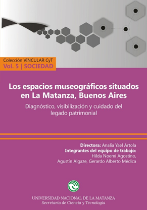 En el marco del 30° aniversario de la creación de la Universidad Nacional de La Matanza, la Secretaría de Ciencia y Tecnología realizó una convocatoria especial llamada “Vincular” para presentar estudios de diagnóstico dirigidos a la obtención de un conocimiento específico a partir del relevamiento de datos sobre una determinada situación o problemática en el partido de La Matanza. Para la evaluación de las postulaciones la secretaría reunió al Consejo de Investigación, que seleccionó trece proyectos para su ejecución, entre ellos, el dirigido por la Mg. Analía Artola y un equipo integrado por la Dra. Hilda Noemí Agostino, el Prof. Agustín Algaze y el Lic. Gerardo Médica, todos docentes de la Licenciatura en Historia, de la misma casa de altos de estudios. Este grupo de profesionales trabajó con aquellos lugares que se identificaran como museos y estuvieran ubicados geográficamente en La Matanza o, que las producciones que constituyen su núcleo central tuvieran su origen dentro del partido y los resultados de este estudio dieron origen a la obra que nos convoca en esta reseña: Los espacios museográficos situados en La Matanza: Diagnóstico, visibilización y cuidado del legado patrimonial, volumen número quinto de la colección CyT Vincular UNLaM 2019.