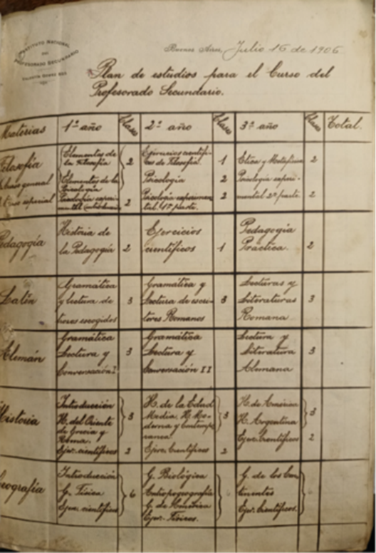 La primera década del Instituto se caracterizó, siguiendo a estas autoras, como período de creación y estructuración institucional durante el cual se ensayaron diferentes propuestas curriculares y organizativas surgidas de las necesidades sociales de cobertura docente. Sin embargo, esta experimentación se articuló consistentemente sobre una misión específica: proporcionar formación integral a quienes asumirían la responsabilidad de la enseñanza secundaria. Esta misión, inicialmente dirigida exclusivamente hacia sujetos masculinos provenientes de la Universidad de Buenos Aires y de Colegios Nacionales, posteriormente se amplió para incluir mujeres, inicialmente a solicitud nominal, algunas de estas universitarias, otras provenientes de Escuelas Normales o Liceos.