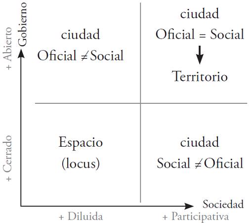 De manera que la constitución de una negociación entre lo oficial y lo social (Figura 1) conformaría un verdadero ejercicio para transformar el espacio en territorio socialmente construido, pues se estaría fusionando, como señala Haesbaert, (2006), un componente que implica un dominio económico, político y administrativo, y un componente que implica un dominio simbólico, cultural e histórico, donde el espacio, una vez representado, ya no será espacio, sino territorio.