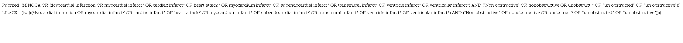 This study is a systematic review conducted based on PRISMA guidelines. Two databases, PubMed and LILACS, were used for the initial search of articles containing relevant data related to MINOCA. The searches consisted of text terms and controlled vocabulary such as MeSH, as shown in Table 1 . Terms related to the type of article or study design were not included in the search. At this stage, 619 eligible articles were obtained.